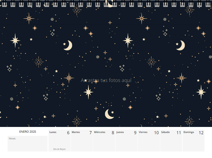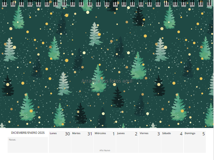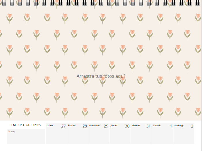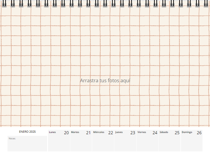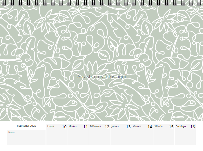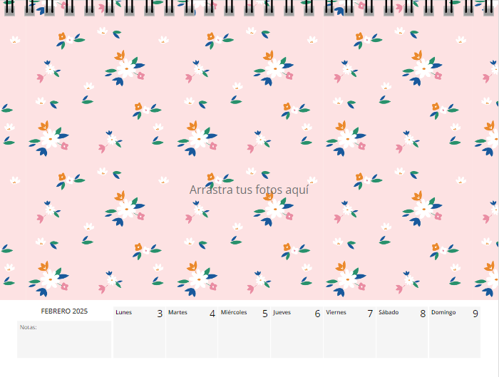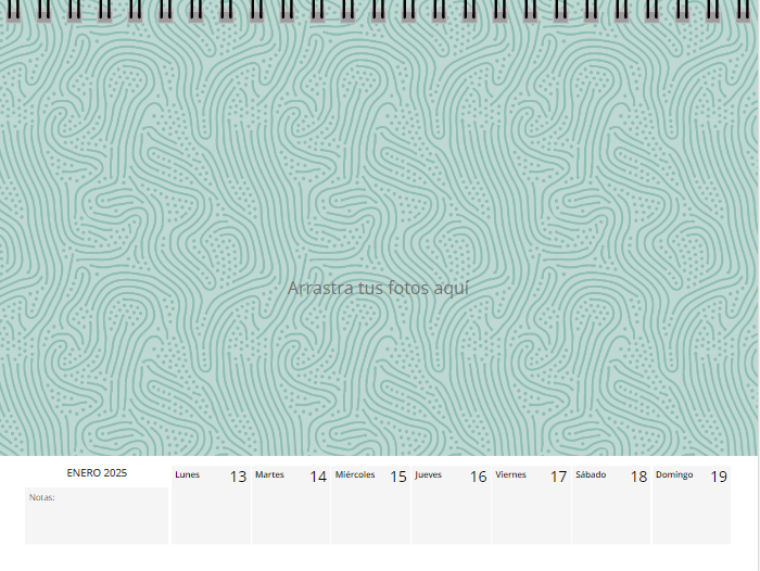 Con su formato escritorio y una página propia para cada semana, ¡se te harán más amenos los lunes por la mañana! Pues sí...qué mejor manera de empezar la semana en la oficina pasando página a tu calendario y descubrir nuevas fotos que te traerán lindos recuerdos. Si en tu familia hay una persona a quien le gustan los lunes, ¡este es el regalo que necesita para comenzar la semana con ganas! Para alegrarte aún más los días, combina a lo largo del año los fondos creativos. Y lo mejor de todo, personaliza las fechas con notas de amor.